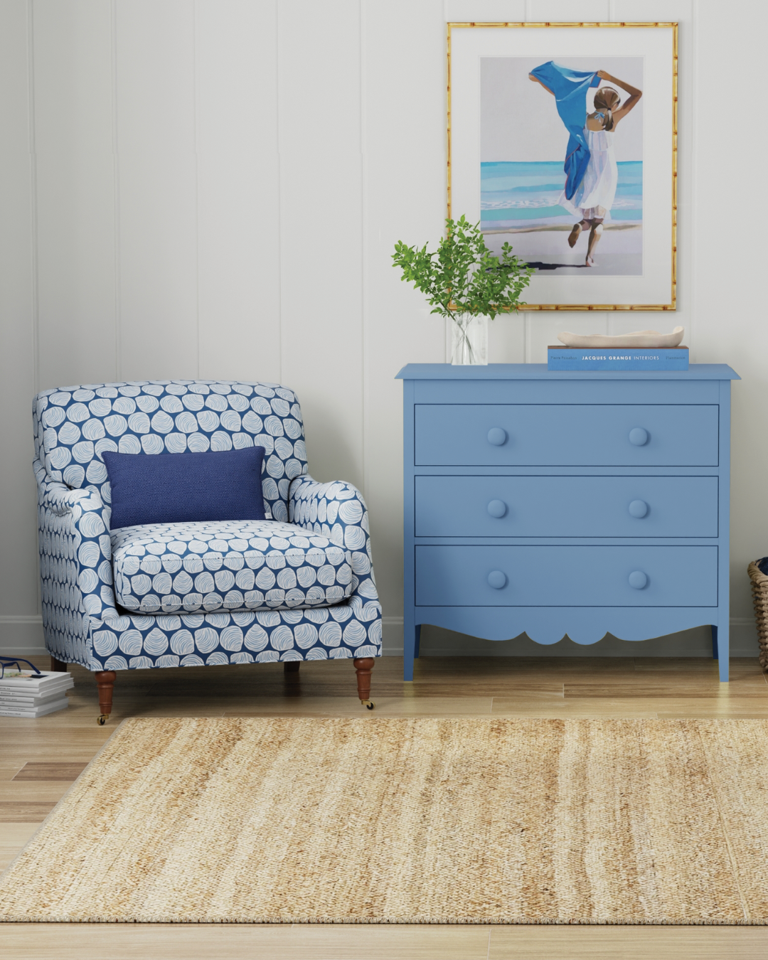 Maine Cottage frame and fabric combination. Our fabric coordinates are mix-and-match