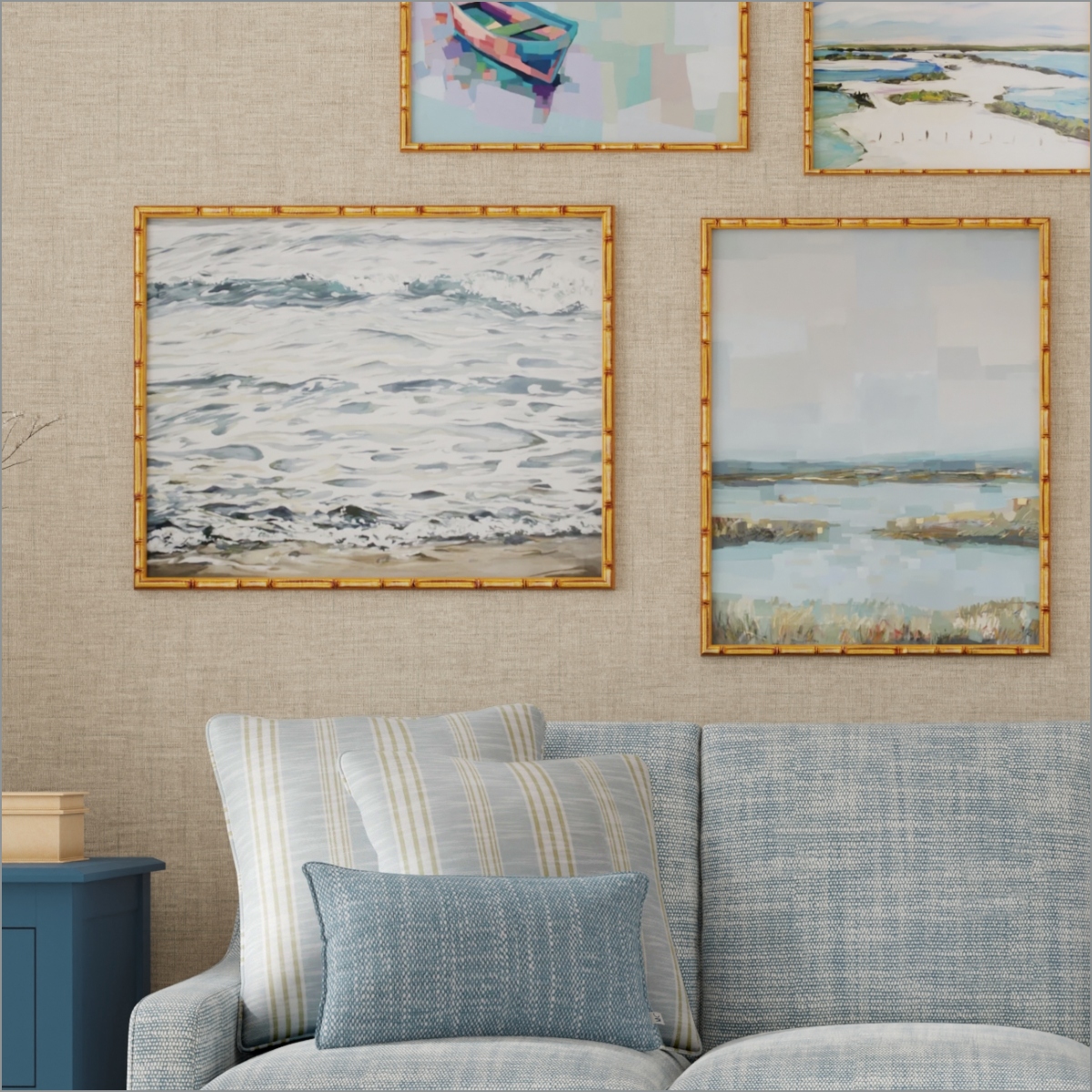 Each of our frames are made from high-quality solid wood then custom cut and joined to make your Maine Cottage art truly one of a kind.