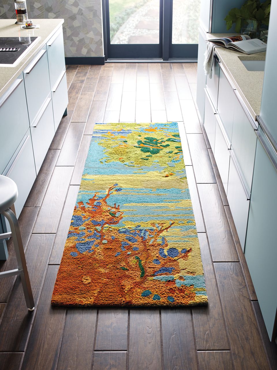 Art for the floor, our hand-made Landscape rug was inspired by an oil painting by artist Jennifer Hansen. Hand-tufted, our pure wool Landscape rug features gradations of color in the sky and trees to form a beautiful backdrop of soothing color for any room.
