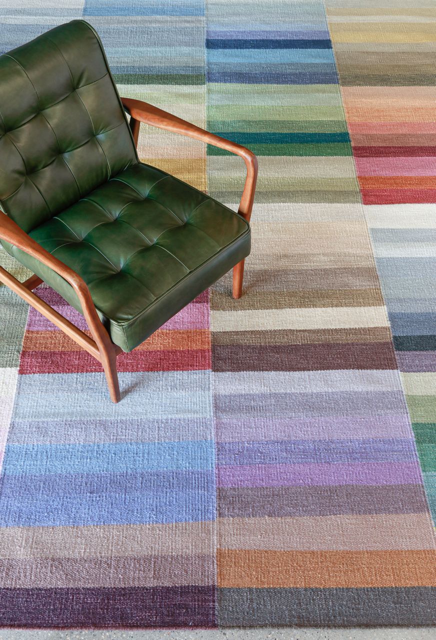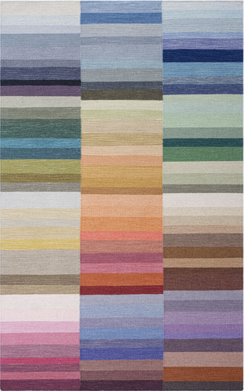 An exuberant design featuring a painter's palette of exciting modern tones, Color Code makes it easy to find your own decorating shades among its graphic gradations of a hundred different hues. Hand-woven of pure wool, this versatile design brings high energy to any room.<br><br>100% wool. Hand-woven, 3/8" flat pile. Made in India. GoodWeave certified.<br><br>No backing; reversible<br><br>