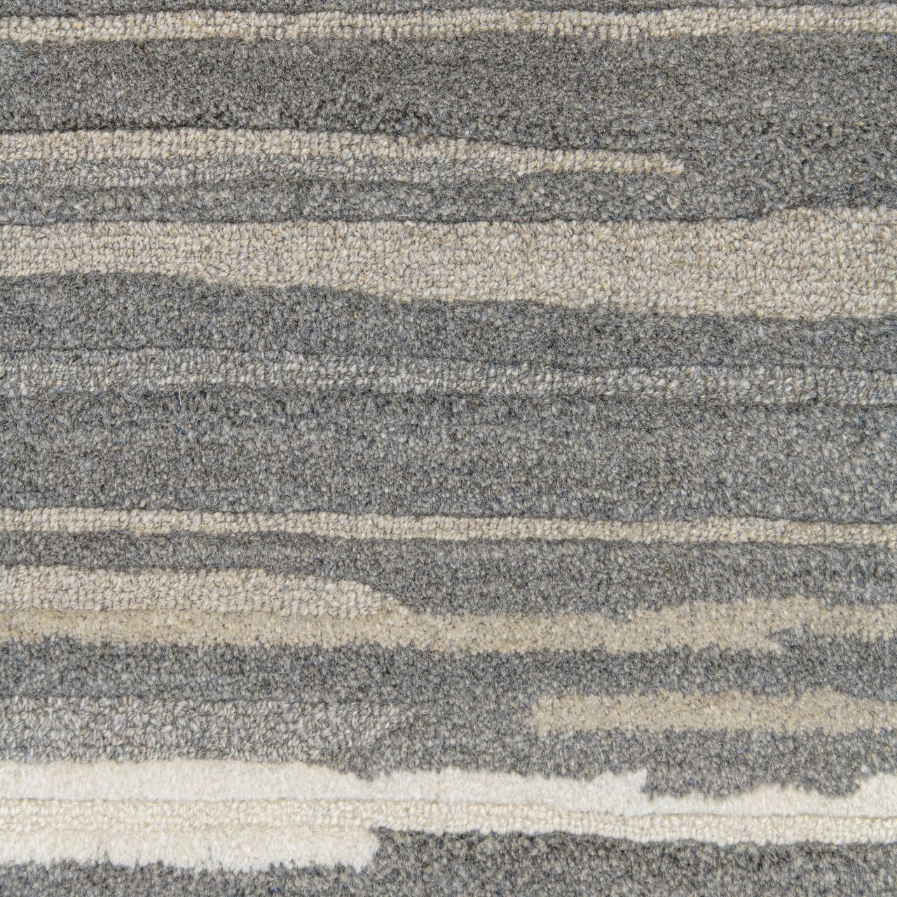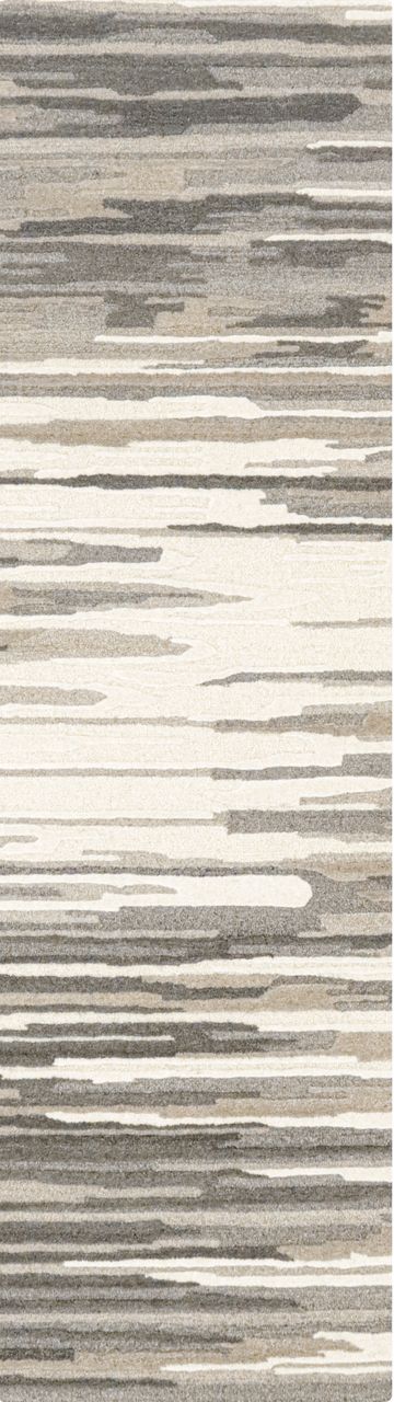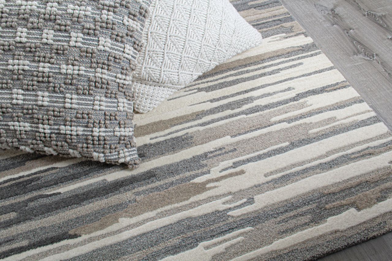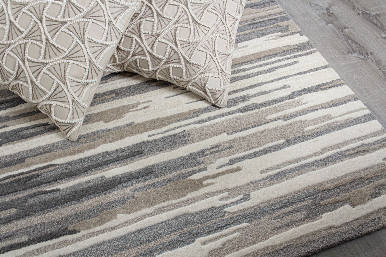 See beyond the horizon. Reminiscent of the serenity found in the striations of clouds drifting across the sky, this contemporary design wows. The abstract design offers texture with high-low tufting in a cut and loop pile for a plush feel underfoot.