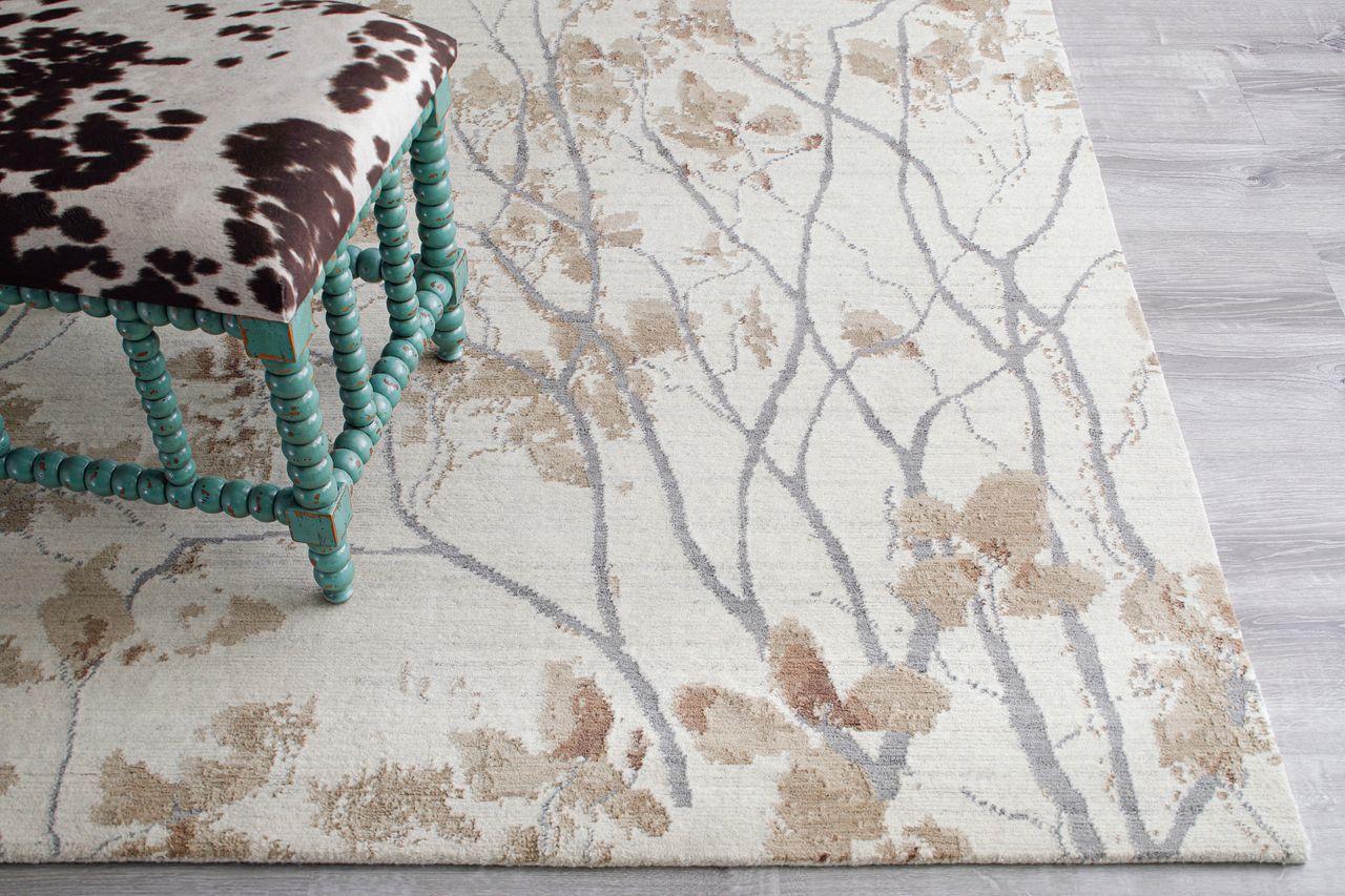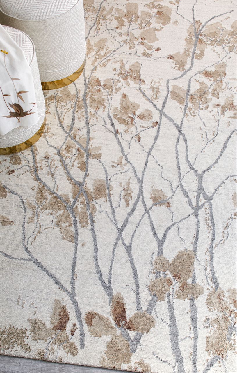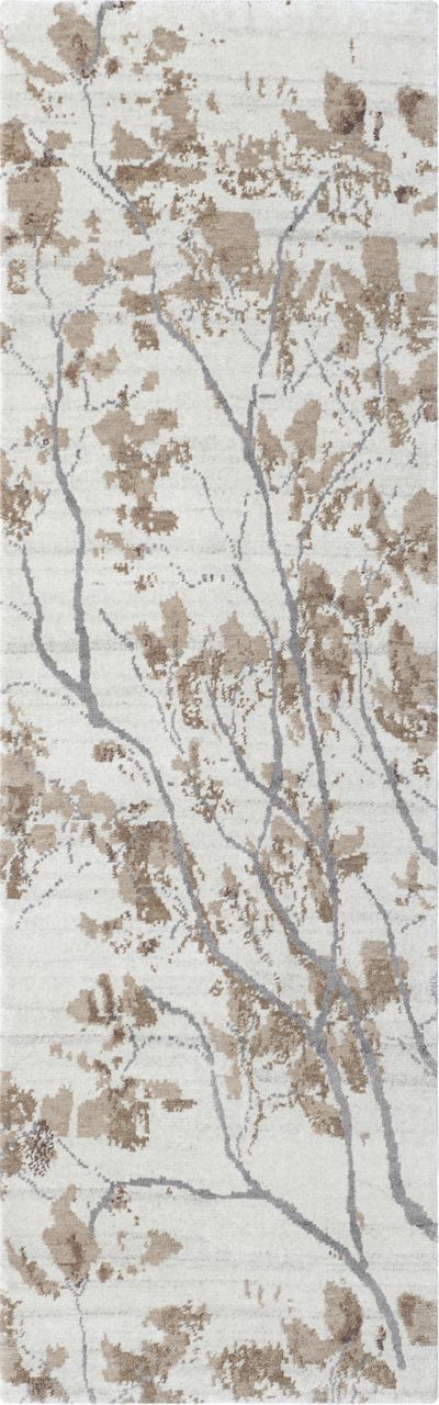 Ethereally elegant, flowering branches of delicate almond blossoms are exquisitely rendered on this opulent hand-knotted original. The soft focus of the design is enhanced by a creamy background with subtle striations of smoky gray. Fine wool yarns in a high knot count give this rug a super-dense pile with a tight softness and a sumptuously smooth surface. Almond Blossom's rich appearance and luxurious hand will enhance any living space.