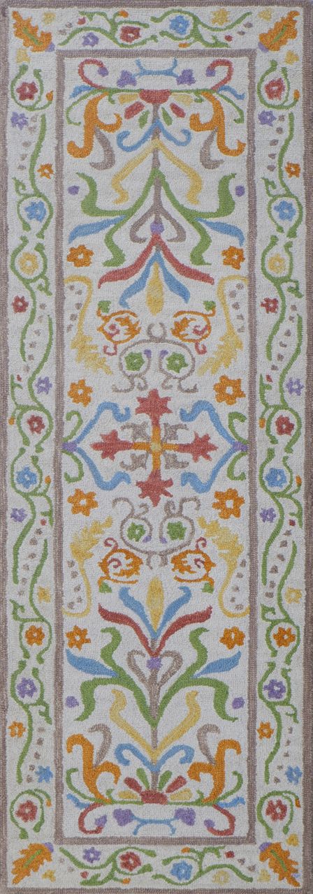 100% wool. Hand-tufted, 1/2" loop pile. Made in India. GoodWeave certified.